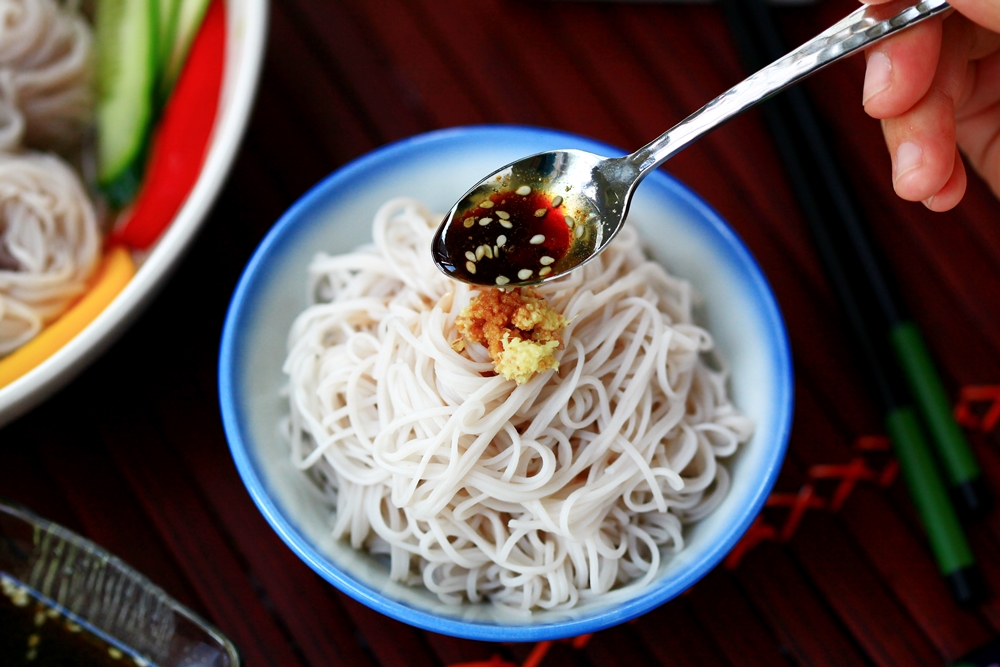 純天然的蕎麥原色,完全不添加人工色素,富含高量蕎麥細粒,一口咬下,無可挑剔的 Q 彈咬勁,樸實香醇的蕎麥清香立即在嘴裡漾開,煮後閃耀晶亮光澤,搭配上喜愛的簡易醬汁,低熱量、無負擔,絕對讓你大口不停吸入麵條,直呼過癮!夏季可做冰鎮冷麵,滑順爽口;冬季可配合熱湯,能吸附更多湯汁,勾勒出蕎麥麵另一番風味。
