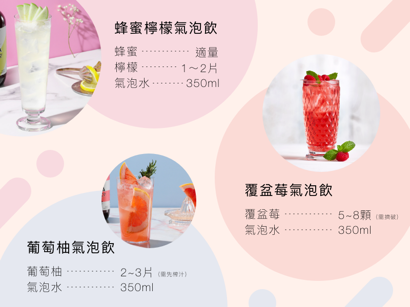 除了汽水、水果氣泡飲,還能用來製作果醋、烏梅或調酒蘇打飲品,適合和朋友在家聚會開趴,邊玩邊享用!