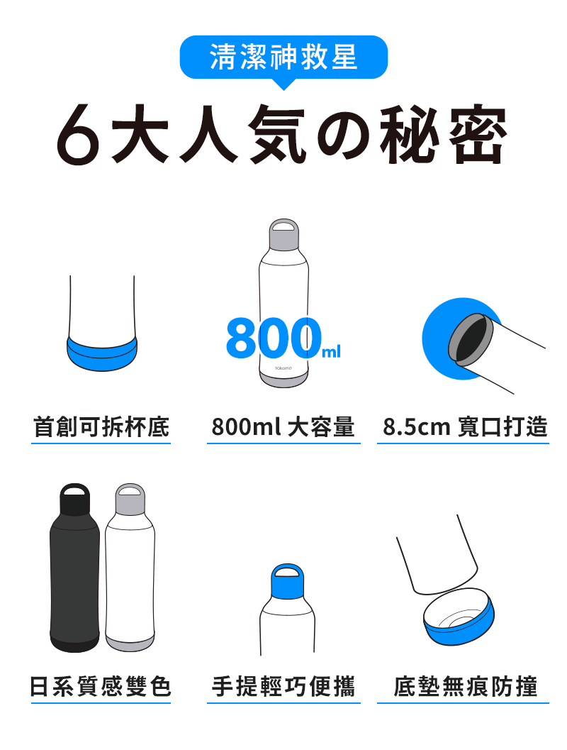 保溫瓶用久了總是會出現水垢污漬!可拆式杯底與一體成型設計,清潔更到位,日常清洗輕鬆簡單,再也不用擔心藏污納垢!