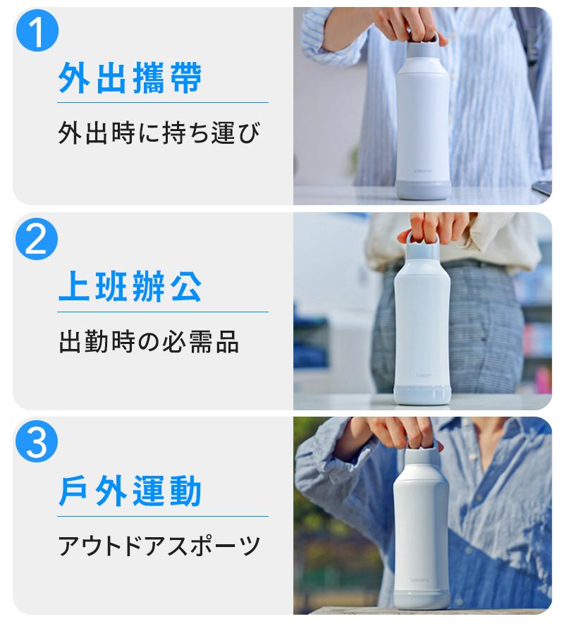 瓶蓋設計為手提把手,多場合適用,隨手一提帶著走,告別「袋」裝外出,讓出門更加輕便!