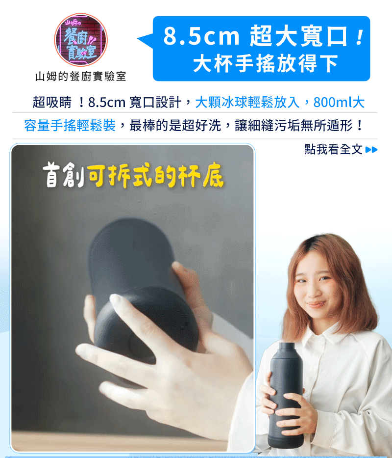 - 8.5cm 寬口,冷飲熱飲都能裝