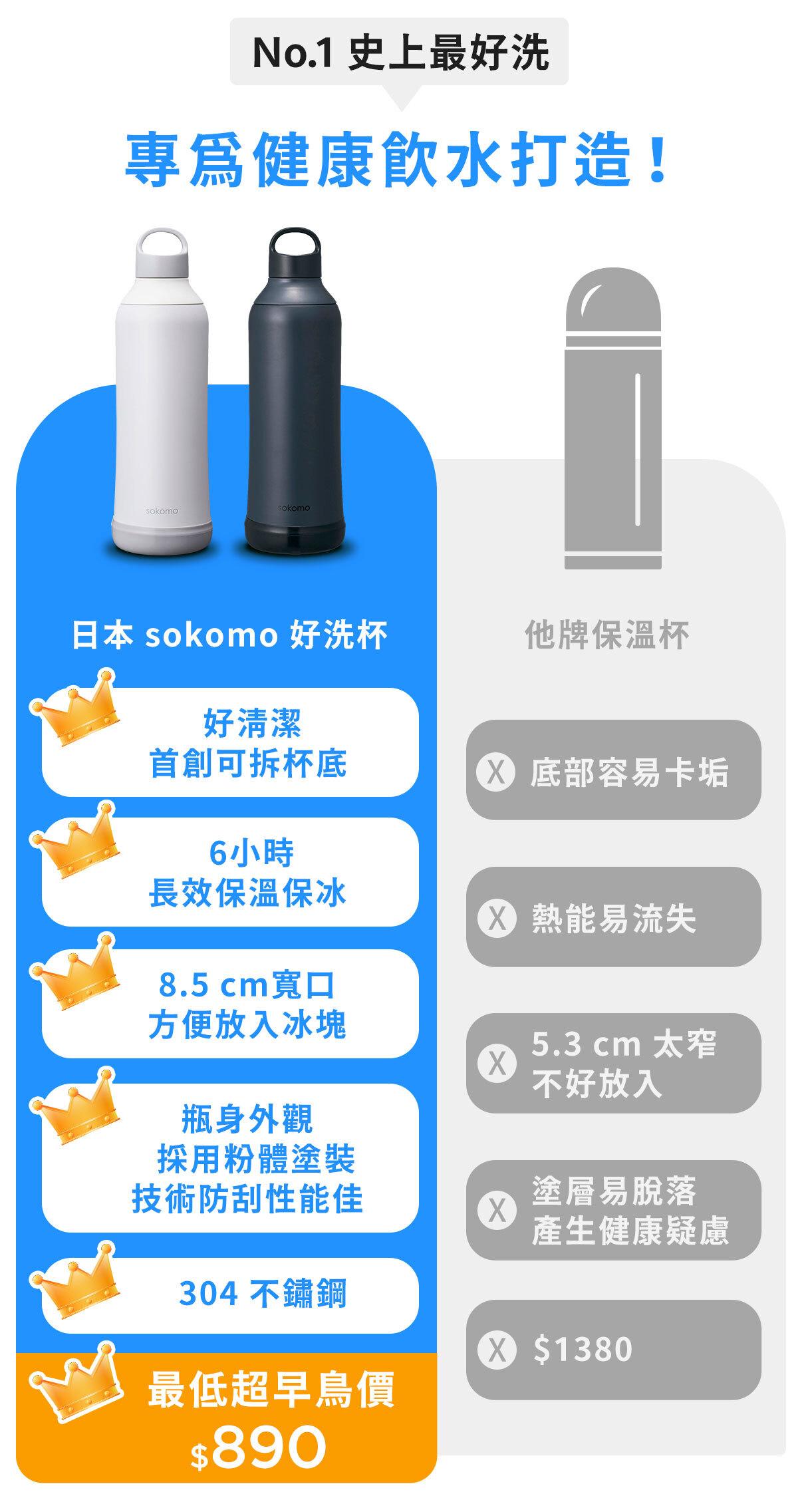 日本sokomo 好洗杯|可拆底座保溫瓶
