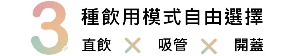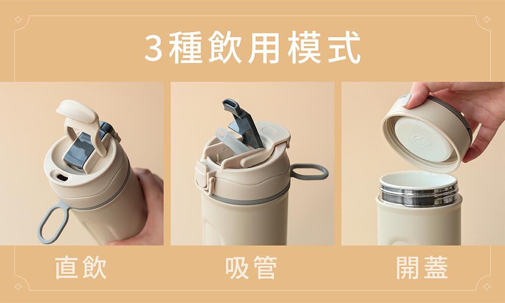 動飲杯兩蓋三用設計,讓杯子使用更機動,不論是冷熱飲或是單手喝飲料,外出攜帶,直飲或吸管派的飲用,讓您怎樣都行!