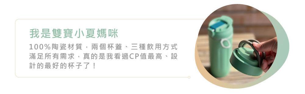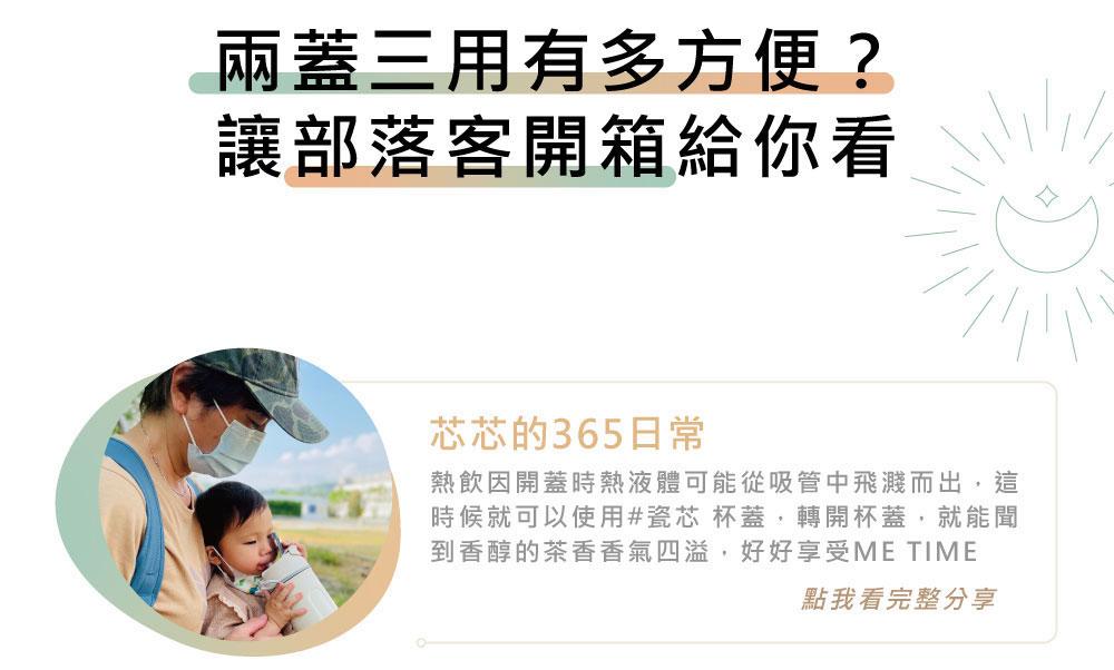 - 兩用杯蓋+瓷芯杯蓋,裝冷熱都 OK