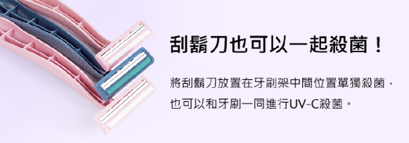 4 格牙刷架可供全家人一起使用,另外也可以放置刮鬍刀,一同進行 UV-C 殺菌;平常也可以用水清洗殺菌機表面和可拆式牙刷架。