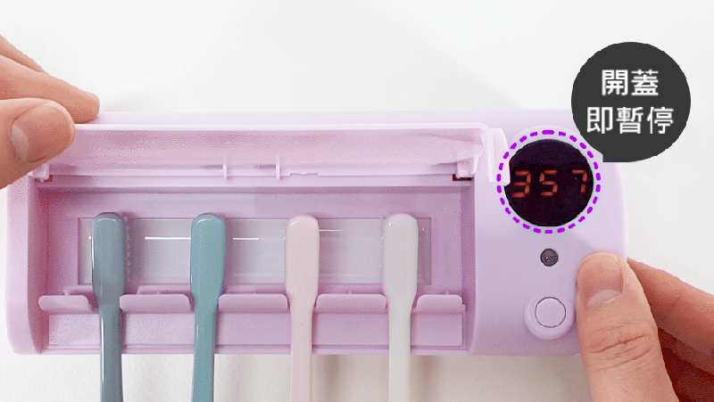 消毒過程中打開蓋子的話,機器將會自動暫停運作;再次關上蓋子時,機器將再次自動啟動並依照剩下的時間完成消毒。
