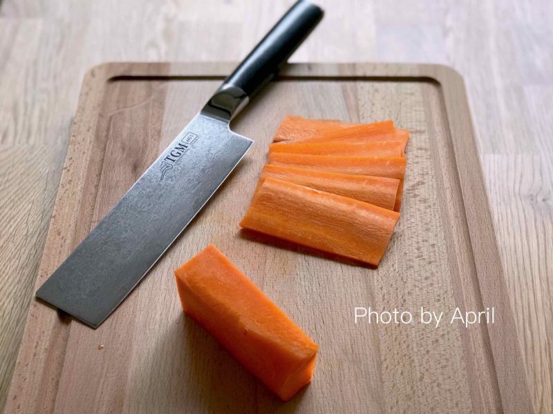 日本傳統刀型,刀身比較薄比較鋒利,適用於料理蔬菜,經典的方型可以將蔬菜快速切削皮、切絲、切薄片。