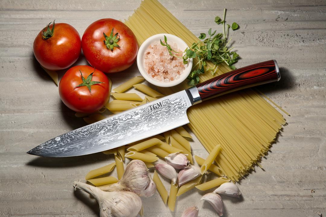 TGM 突破傳統限制大馬士革碳鋼的限制,採用三種不同特性的的不鏽鋼來製作,利用金屬的特性來打造獨特的鋼紋同時又兼具不易生鏽的特性,設計出與它牌風格不同的大馬士革鋼廚具刀。