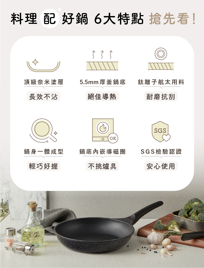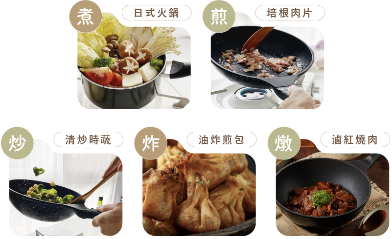 打破廚具只能處理特定料理的既定印象,煎煮燉炒萬用好鍋,讓您在家中煮飯時,各種料理需求輕鬆上菜!