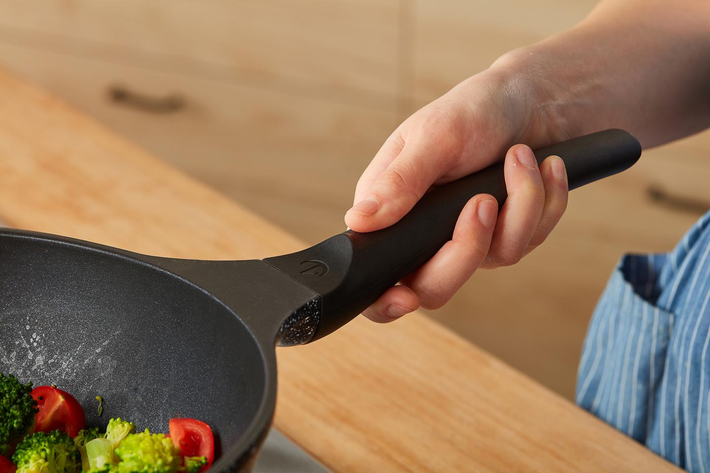 比起他牌平底鍋易焦油煙多,膳夫鍋受熱均勻,擁有絕佳導熱與保溫性,讓鍋面溫度持續穩定,料理烹調時能產生較少油煙,減少人體負擔。