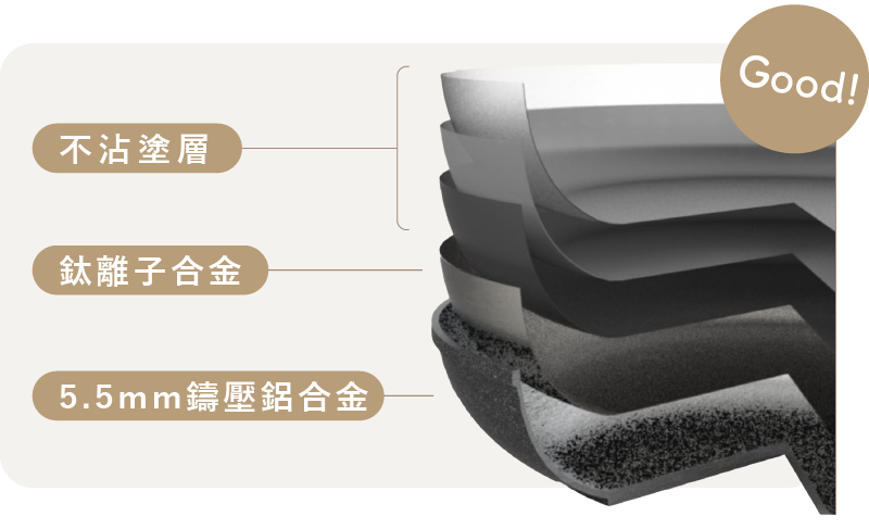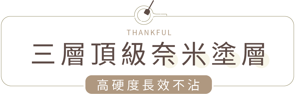 - 三層頂級奈米塗層,高硬度長效不沾