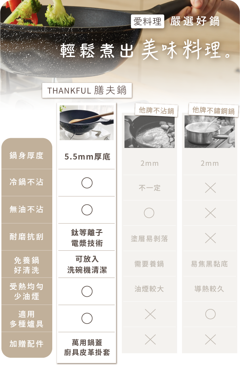 - 真正免養鍋,保養清潔超輕鬆