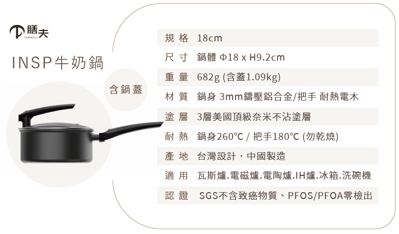 - 底部內嵌導磁圈,IH 爐也適用