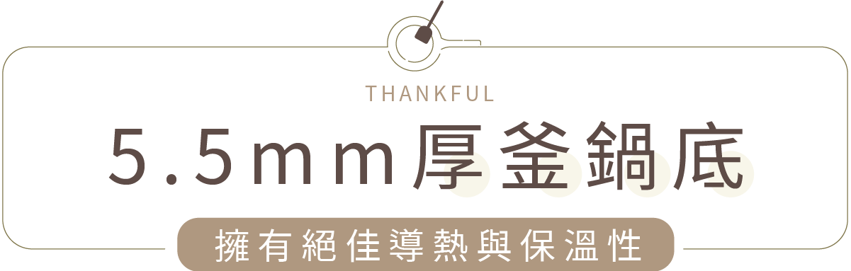 - 5.5mm 厚釜鍋底,絕佳導熱保溫