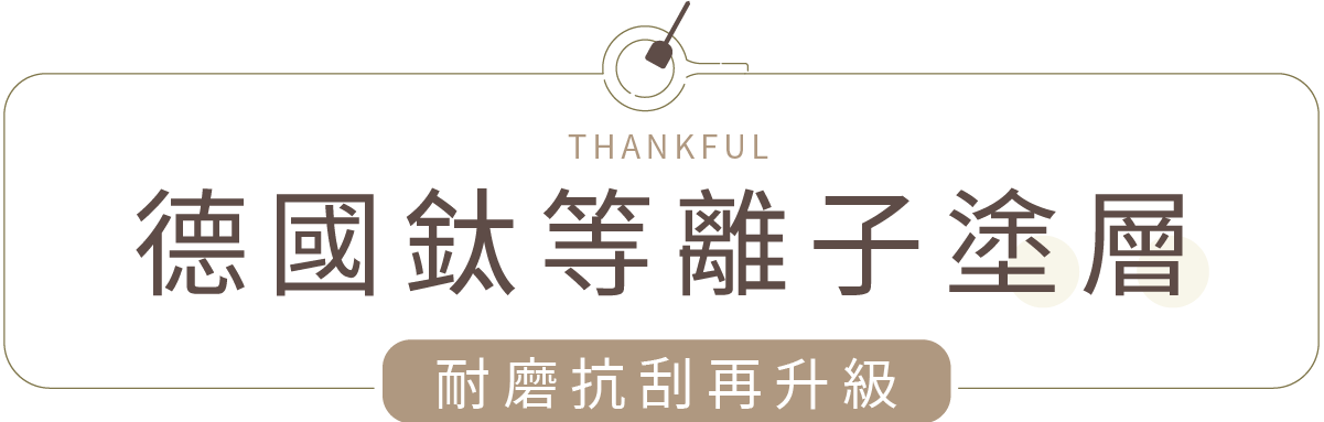 為了將不沾鍋的特性再往上提,使用「Extra Platinum 頂級奈米不沾塗層」,加上高硬度、耐磨的鈦顆粒,頂級三層奈米用料,讓不沾度、耐用度以及安全性都達到最高標準。