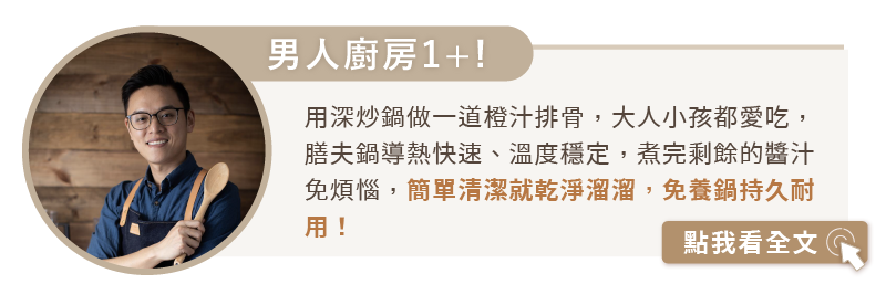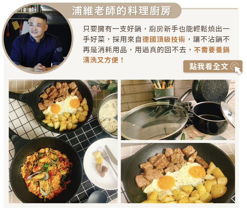 方便、好用與低調外型設計的膳夫鍋廚具,解決家中的各種不沾鍋困擾需求,打造最耐用的不沾鍋,讓新手輕鬆愛上料理,男人做菜也更加帥勁俐落,原來做菜是如此簡單有魅力的事情!