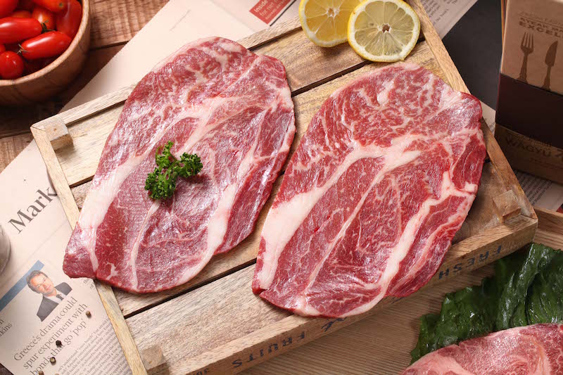 由澳洲農場空運直送,取自於牛肩胛部位,中間夾有細筋,在加熱料理後,咬起來反而會有脆脆的 Q 彈口感,搭配上和牛豐富細緻的油花及軟嫩多汁的肉質,一口咬下就同時擁有多種享受!