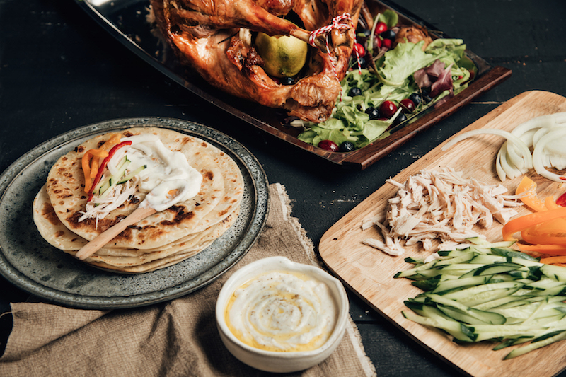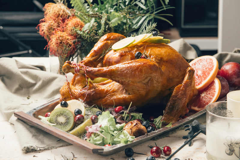 餐桌上擺滿各式各樣的美味佳餚,而最重要的就是要端出感恩聖誕節必吃的-櫸木香烤燻火雞!