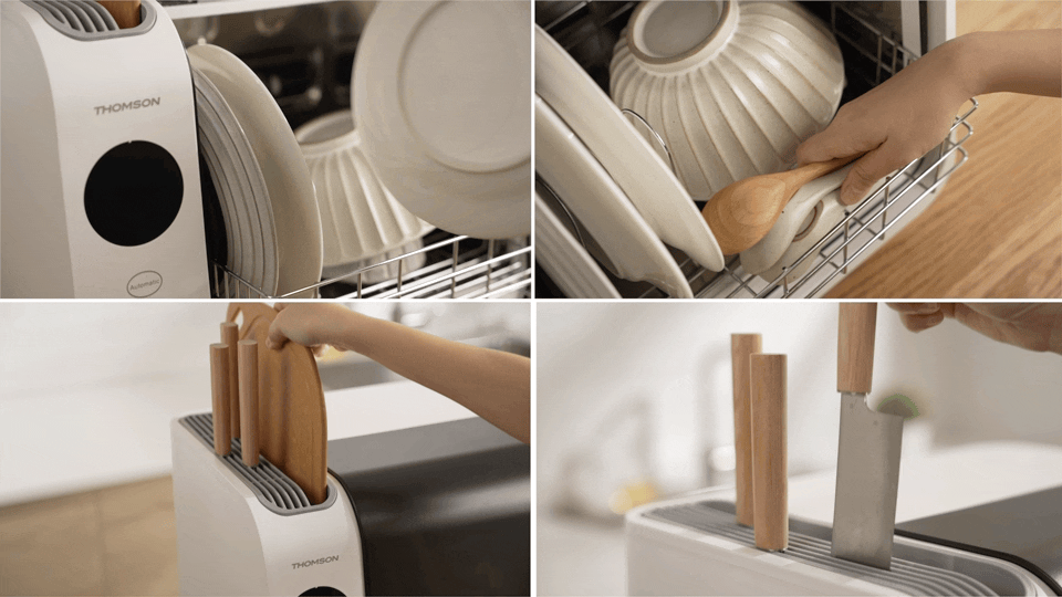 專為一般家庭用餐的使用習慣設計,可擺放各類型及材質的餐碗盤與廚房用具,約能放入8個碗、7個盤子、15雙筷子、1個傳統砧板、8把小刀或者4把大刀。