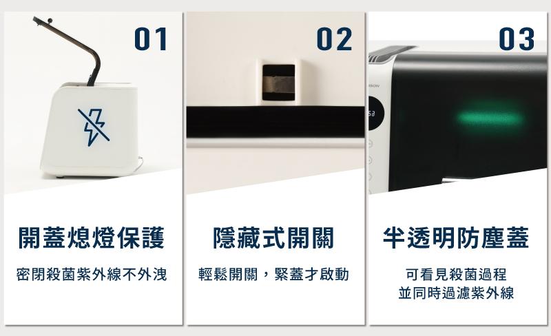 符合安全檢驗,紫外線光 UV-C 照射持續 50 分鐘,可殺死空氣中 99.9% 的大腸桿菌、金黃色葡萄球菌、白色念珠菌等。
