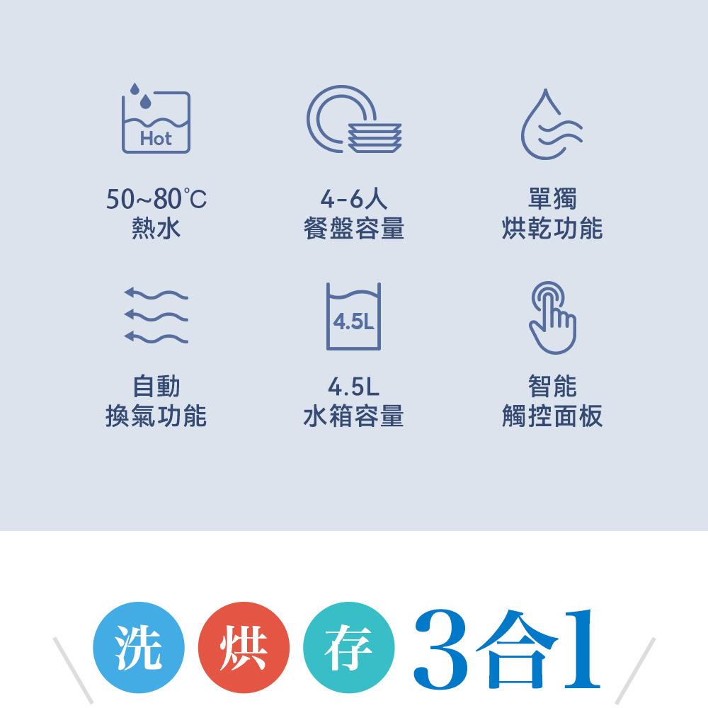 • 小體積大空間,最高容納 6 人份餐具