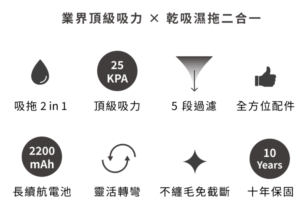 來自法國的家電品牌,主打乾吸+濕拖二合一,配備 25KPA 強大吸力,不纏毛高效清潔,吸出頑強髒汙灰塵!質感旗艦版十年保固,安心好品質,還有專屬收納架,貼心設計讓你不用煩惱收納問題!