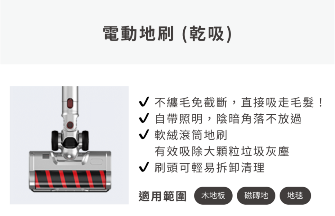 • 不纏毛地刷,免截斷直接吸入集塵盒