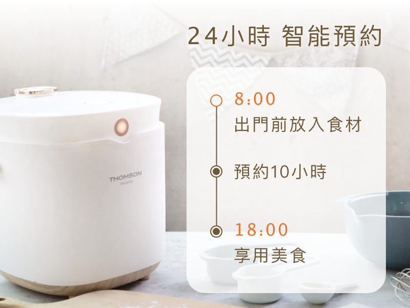 24小時全天候都可預約烹煮開始時間,出門前放入食材,下班也有暖心好菜!