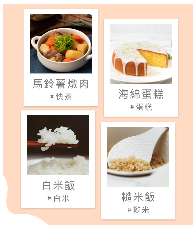 免去自訂溫度時間的麻煩和不知所措,只要選擇適合的料理模式,按鍵一按,就能煮做出美味的料理。