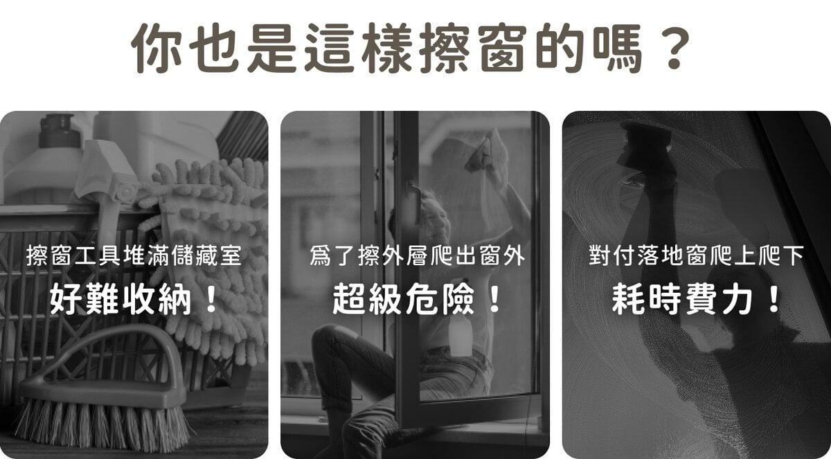 其實,擦窗戶有更簡單的方式!讓你用更直覺輕鬆安全高 CP 值的方式,擺脫平時不常擦窗的三大元兇:危險、麻煩、擦不乾淨。