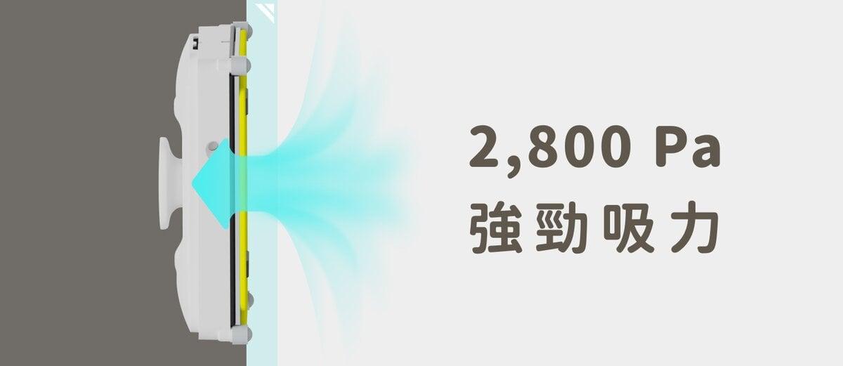 • 2,800Pa 真空吸力,安全牢抓窗戶