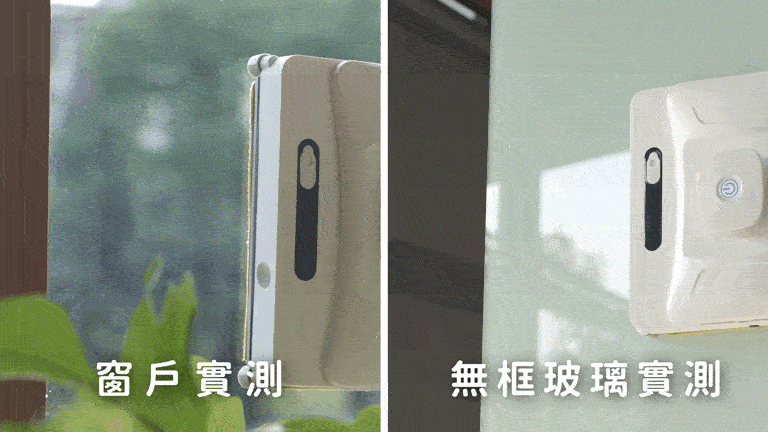 機器四周皆有感應器,只要偵測到窗框或障礙物就會自動轉向防掉落,還有還有無邊框玻璃也能擦!