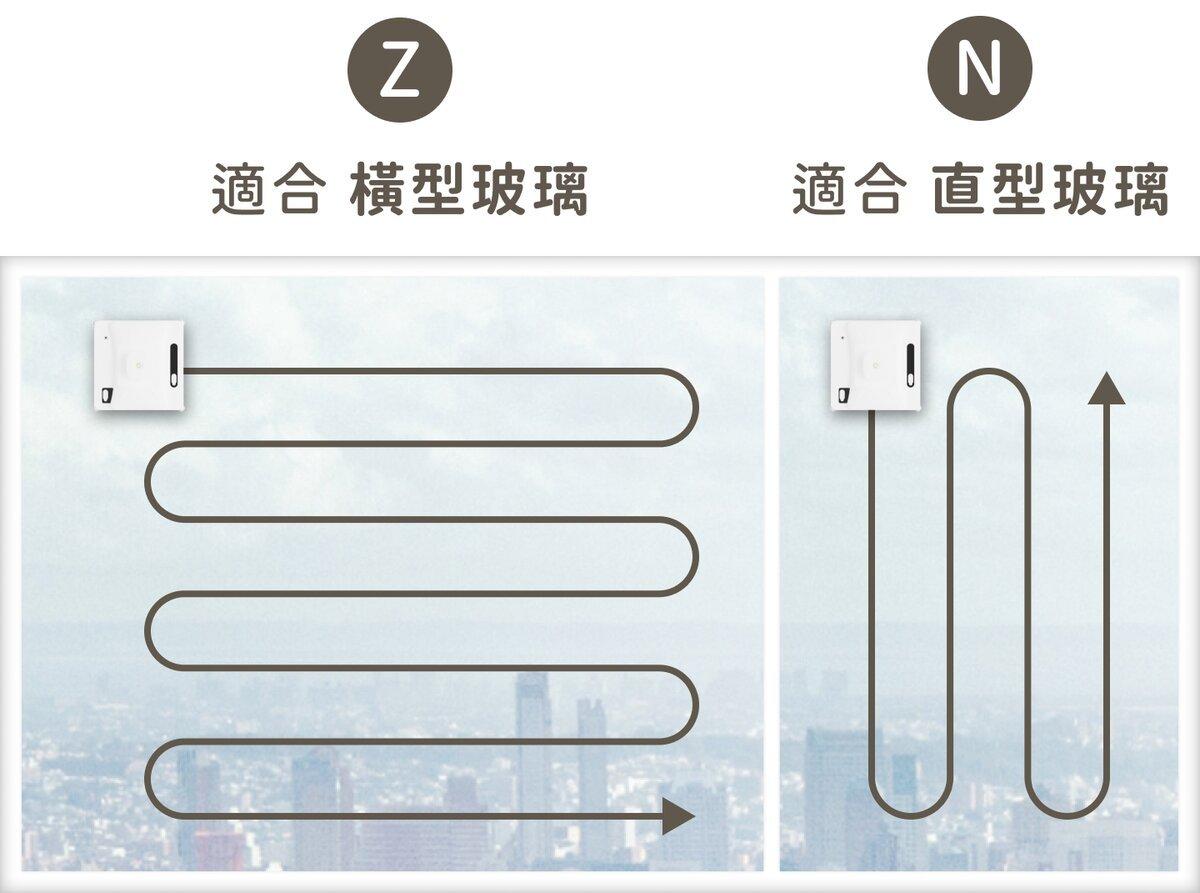 清潔模式共有「縱向 N 字」、「橫向 Z 字」、「Z + N 深度清潔」,機器會根據窗型選擇路徑,最後,擦完玻璃後會回到一開始機器放置的位置,拿取更方便!