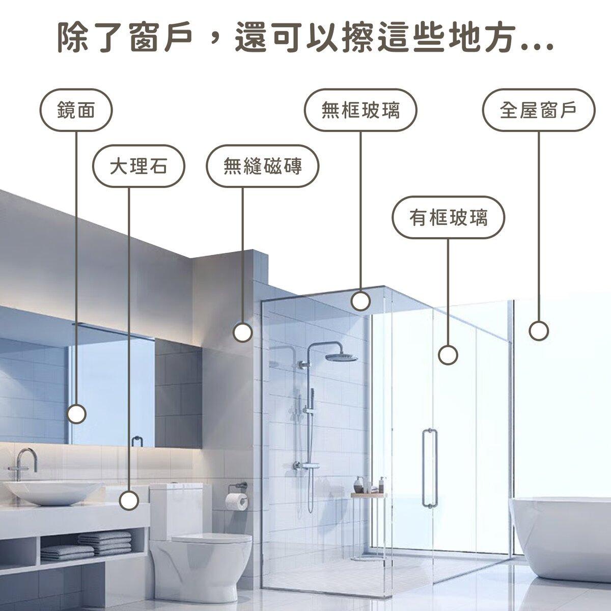• 除了窗戶玻璃,還可以用於鏡子、地板、大理石等光滑平面。(請注意:不能用於尺寸小於40x40cm 或更小的窗戶以及彎曲區域唷)