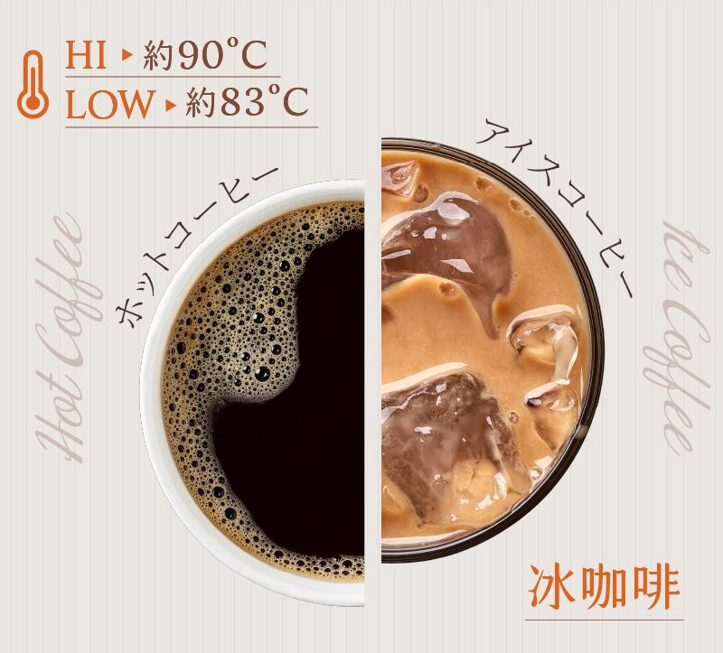 提供三段溫度設定,LOW(約 83°C)/ HI(約 90°C)/冰咖啡(無保溫功能),根據不同的咖啡品種進行調整,濾煮後進入保溫狀態,讓你隨時享用溫熱咖啡!