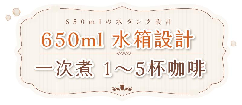 650ml 水箱容量,一次煮 1~5 杯咖啡,根據喜好杯數調整,各種飲品輕鬆製作。