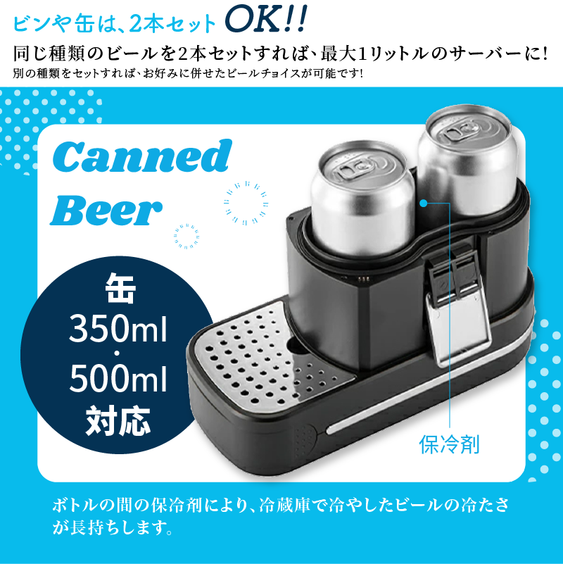 一次可放入兩罐 350ml 鋁罐或 500ml 玻璃罐啤酒,隨附保冷劑可保持飲料冰度,輕鬆做出美味調酒。