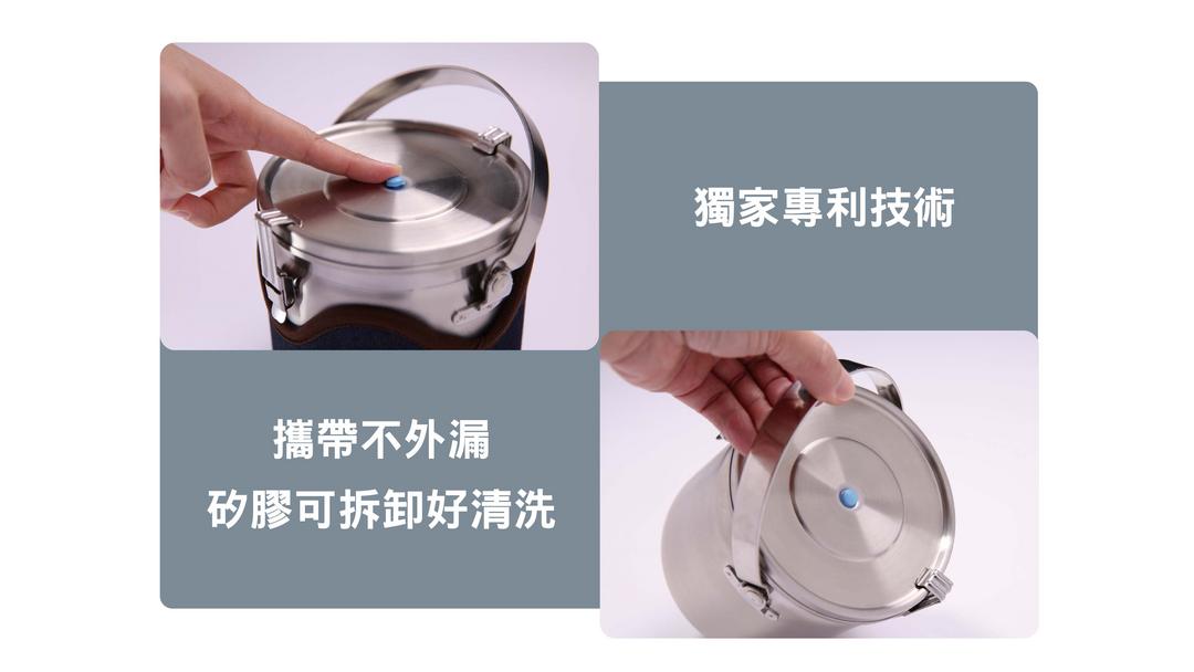 台灣在地製造,瑞康屋與唐榮鋼廠聯合研發,打造革命性鋼材,全新醫療級抗菌不鏽鋼,100% 防漏密封,貼心隔熱保溫設計,適合在外野餐、露營等都攜帶方便!
