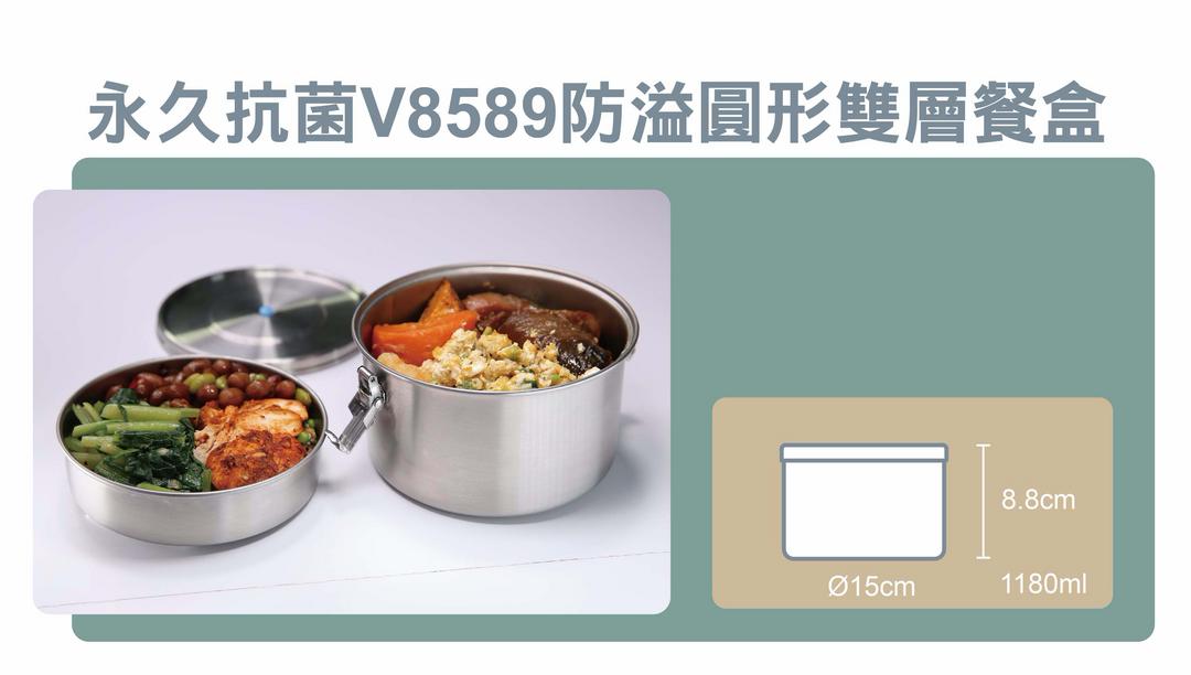 品名:抗菌不鏽鋼防溢圓形雙層餐盒