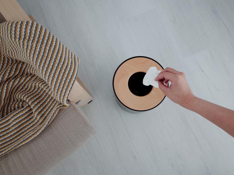 • 比較不建議放在衛浴空間內,除了潮濕問題外、盥洗時的蒸氣容易造成櫸木上蓋因熱漲冷縮變形;且因為上蓋的洞口是開放式的,也不適合丟廚餘等味道較重的垃圾。