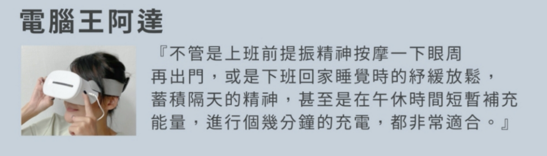 - 獨創水波式系統,溫柔按壓眼周肌肉