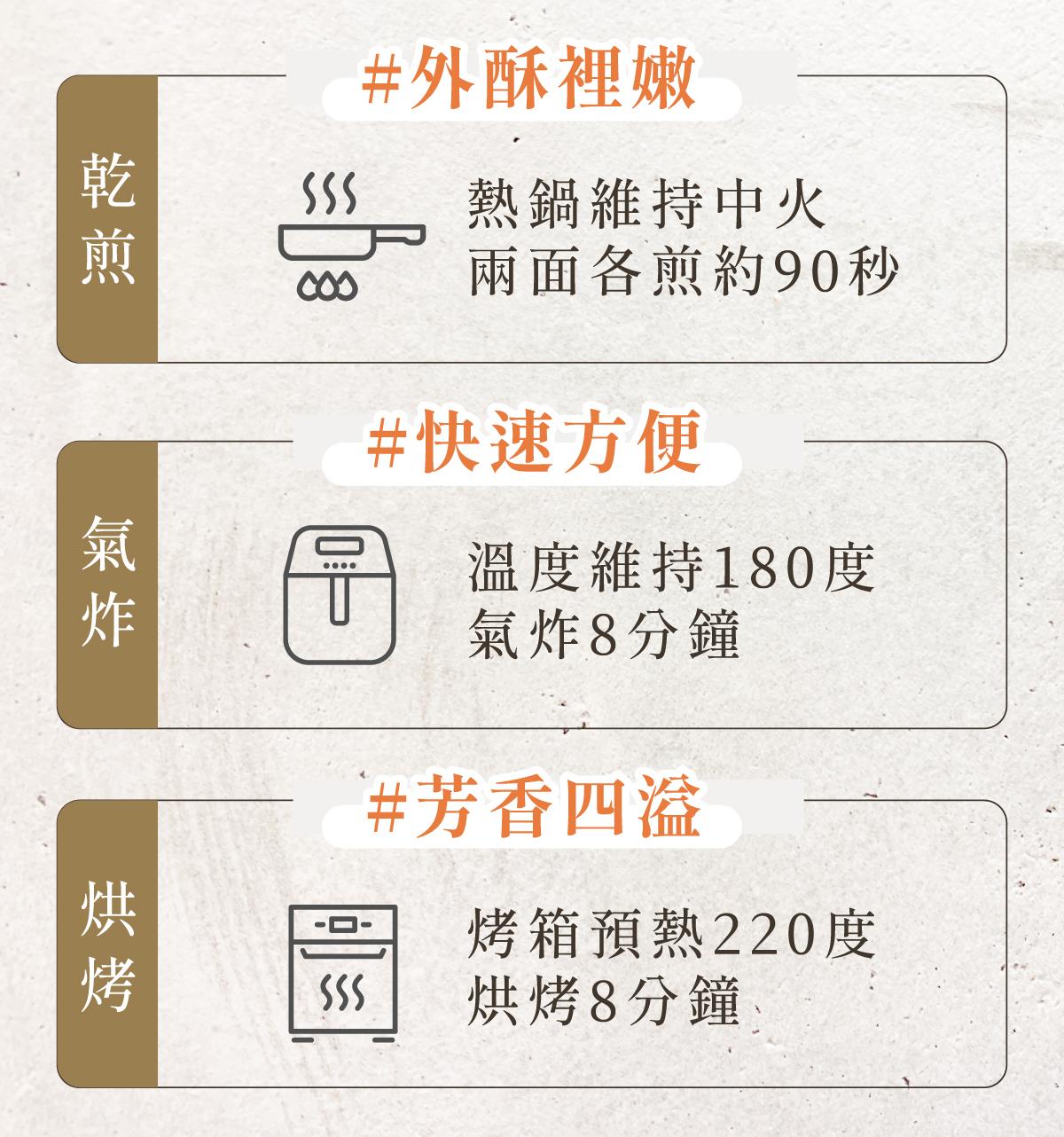 就算在家料理,也不需要繁瑣的烹煮過程,不論是乾煎、氣炸還是烘烤都 OK!