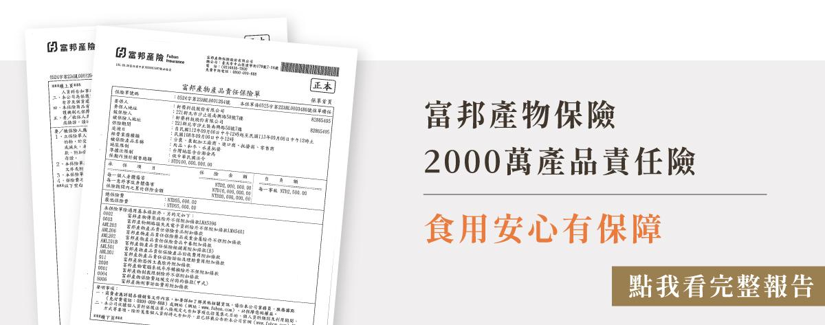 - 兩千萬產品責任險,安心有保障