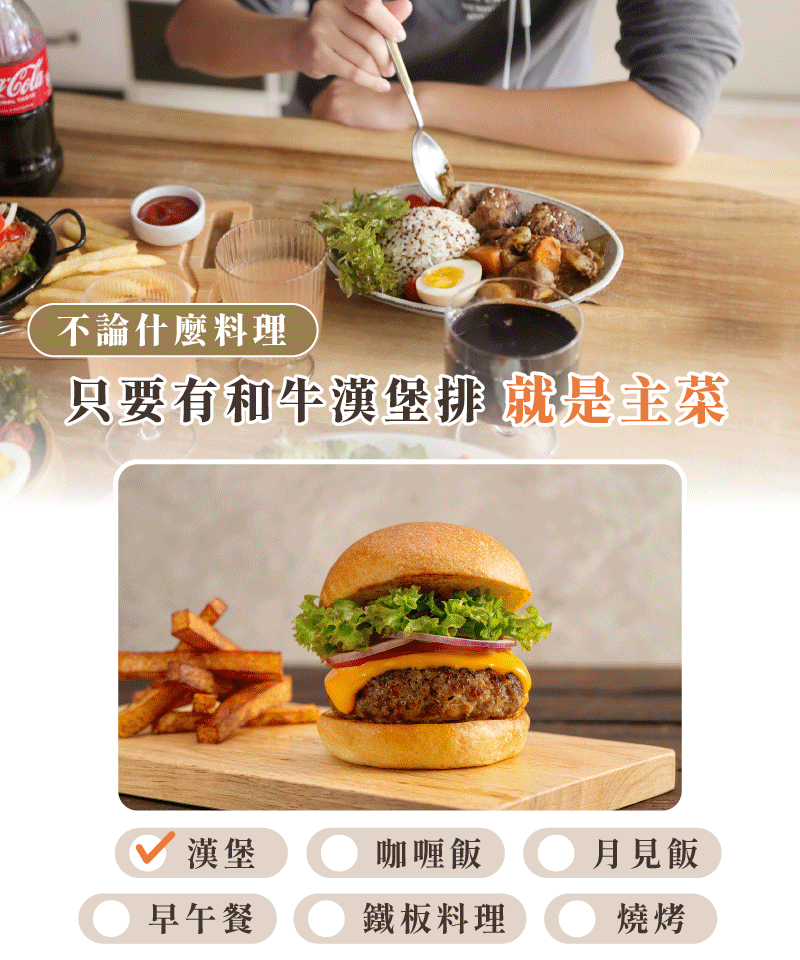 就算是苦惱於料理變化的家庭主婦、不曉得隔天要吃什麼的便當族,還是熱愛露營的戶外咖,只要 20 分鐘,和牛漢堡排就能輕鬆搞定所有人的味蕾。