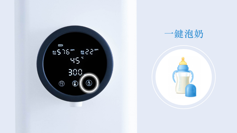 面板設置泡奶快速鍵,能夠依照需求設定「40度 / 70度」的水溫,調節「120ml / 180ml / 240ml」三段水量,快速沖泡寶寶奶粉,新手爸媽泡奶不煩惱。