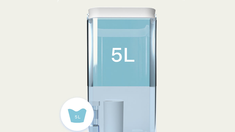 小白鯨內建 5 公升的大容量水箱。水箱夠大,才能免去要不斷重新加水的麻煩。全家人每天要喝的水,交給小白鯨就對了!