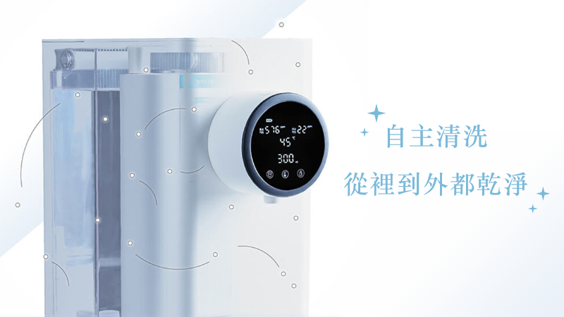 更有「自主清洗功能」,定時清洗機器內的管路,不殘留水垢、青苔等污垢。從頭到尾都是純淨好水,喝水安全又安心。