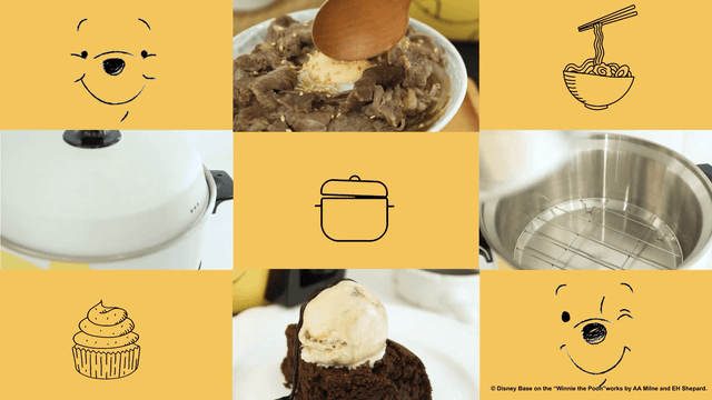 獲 Disney 正版授權,明亮的簡約白、與小熊維尼同色系的活力橘以及超有質感的玫瑰金,還會搭配不同小熊維尼的圖案,打造獨一無二的電鍋!