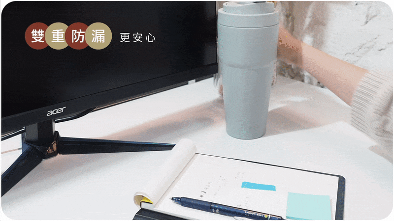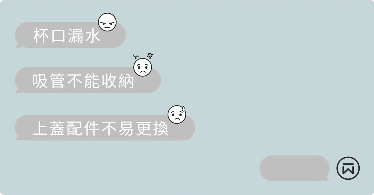 第一代提手杯採用口部封水結構,因材質熱漲冷縮比差異,有可能會導致螺牙鬆動、矽膠部分不密合造成漏水,使用時需將吸管孔與 LOGO 對準已達防漏。