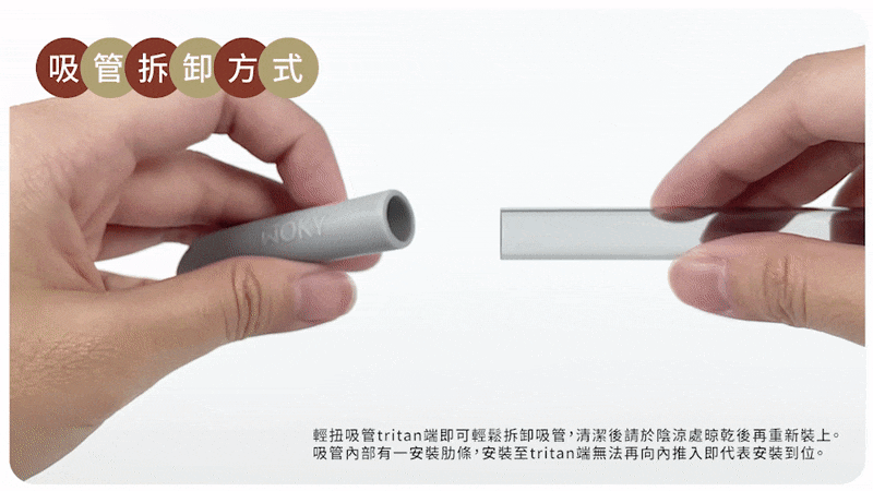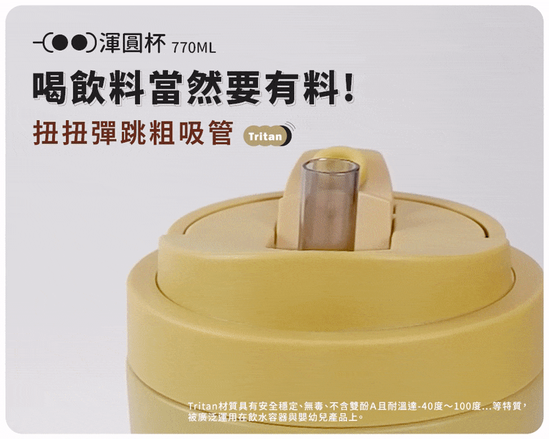 新型結構粗吸管,選用安全材質 Tritan +食品級耐熱 120°C 的矽膠,升級耐用度、透明度、抗異味度,彈跳可收納的設計更是兼具整體衛生與美觀!